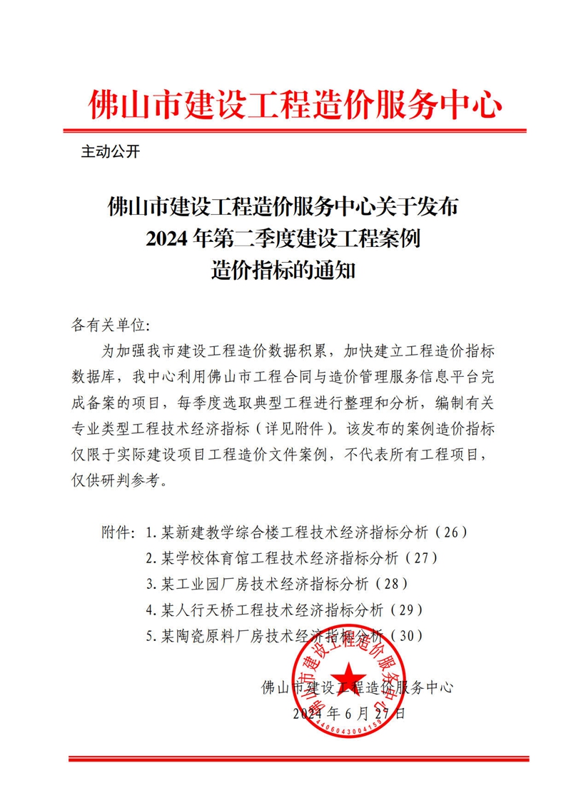 轉(zhuǎn)發(fā) | 佛山市建設(shè)工程造價服務中心關(guān)于發(fā)布2024年第二季度建設(shè)工程案例造價指標的通知