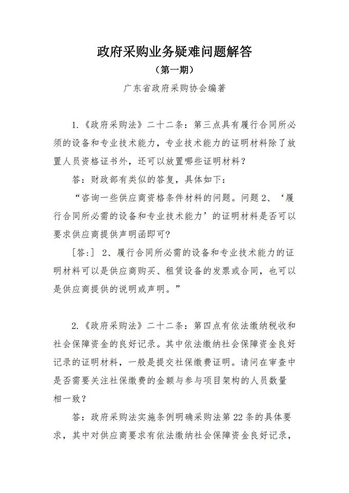 政府采購業(yè)務(wù)疑難問題解答(第一期)